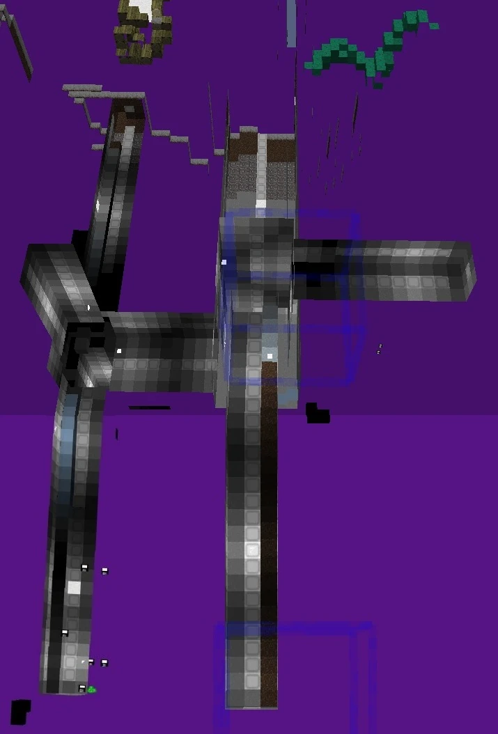 Part of an astronaut lair that runs against a 128-block boundary. There is a pair of 1x3 hallways instead of the normal 3x3.