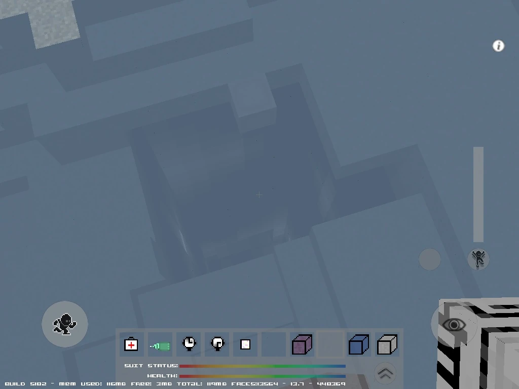 Hallways also have square cross-sections. A strip of polymer blocks will be embedded along the middle of each wall, floor and ceiling. Hallways connected to the main shaft are usually 5 blocks tall x 5 blocks wide. Additional hallway branches are usually 3x3. There are shafts at the end of some hallways, other hallways are dead ends.