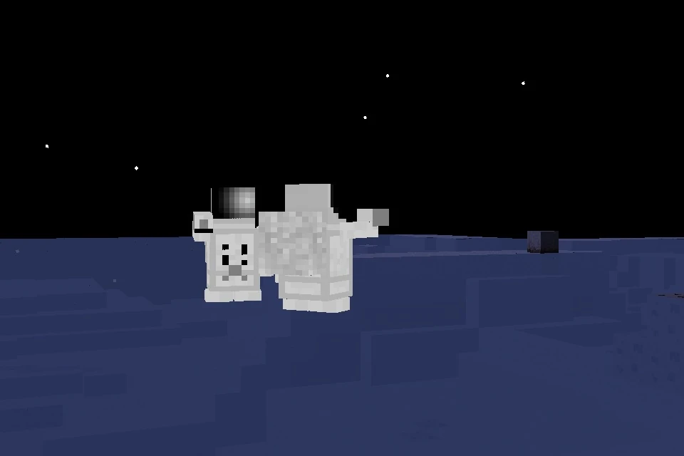 After you play for a certain amount of time, the sun sets and everything goes dark, the sky color fading darker until it is black. During this time it is hard to see. During Night, Neptune is visible along with the slowly moving stars. It is a theory that mobs only spawn at night, but mobs (especially Astronauts) have actually been witnessed spawning at Day, and there are no mobs that are seen only at Night.