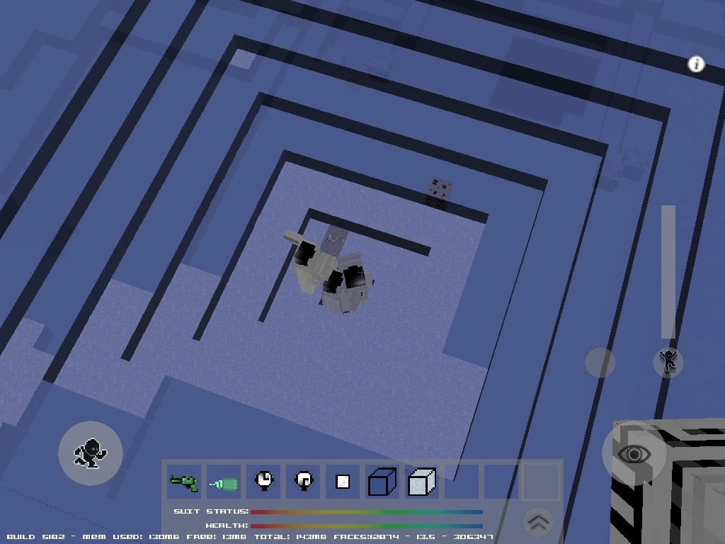 Lately I have started evaluating how many blocks you really need to wall in Astronauts. For this purpose I built a larger astronaut pit with several internal sections: